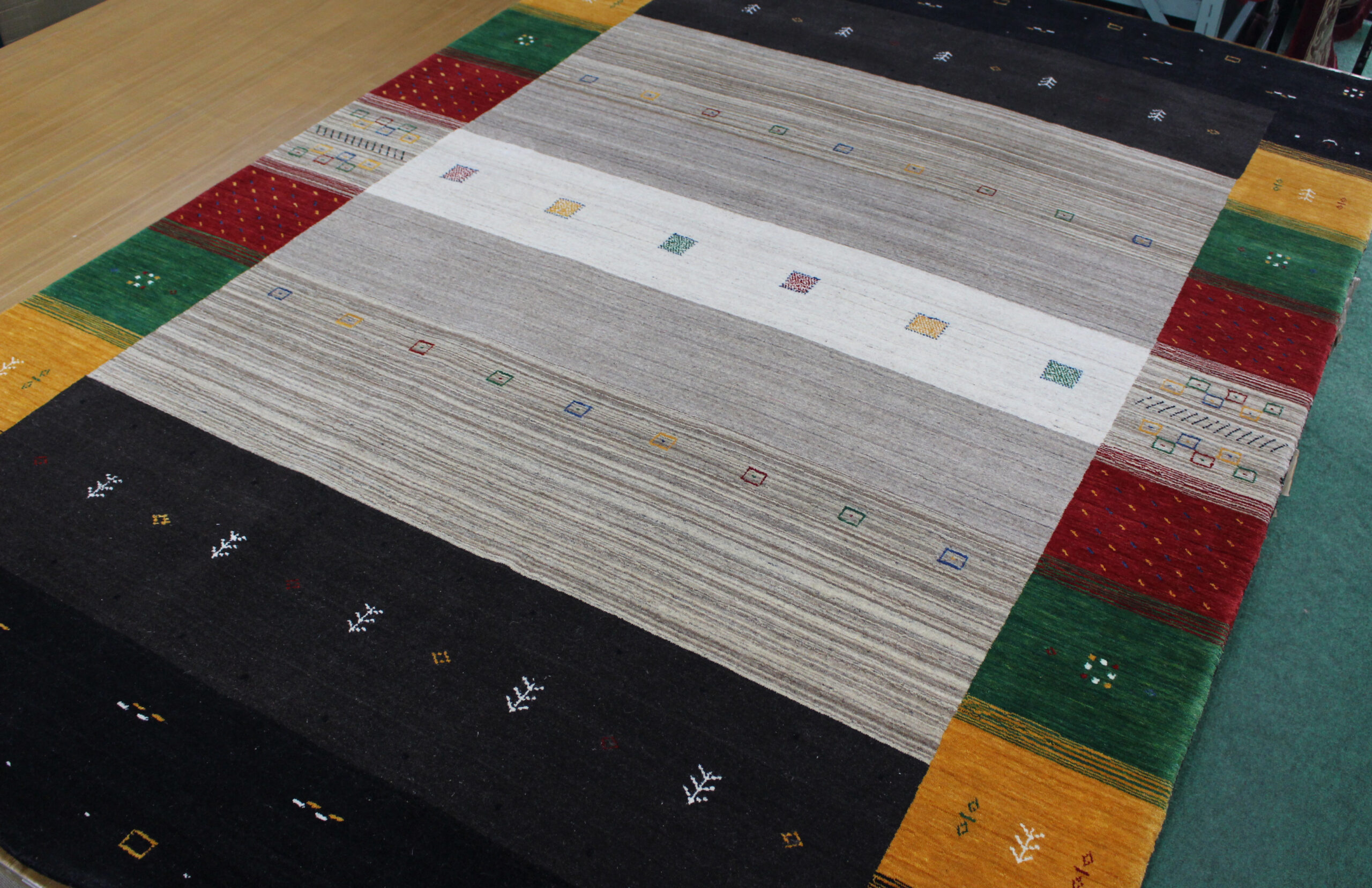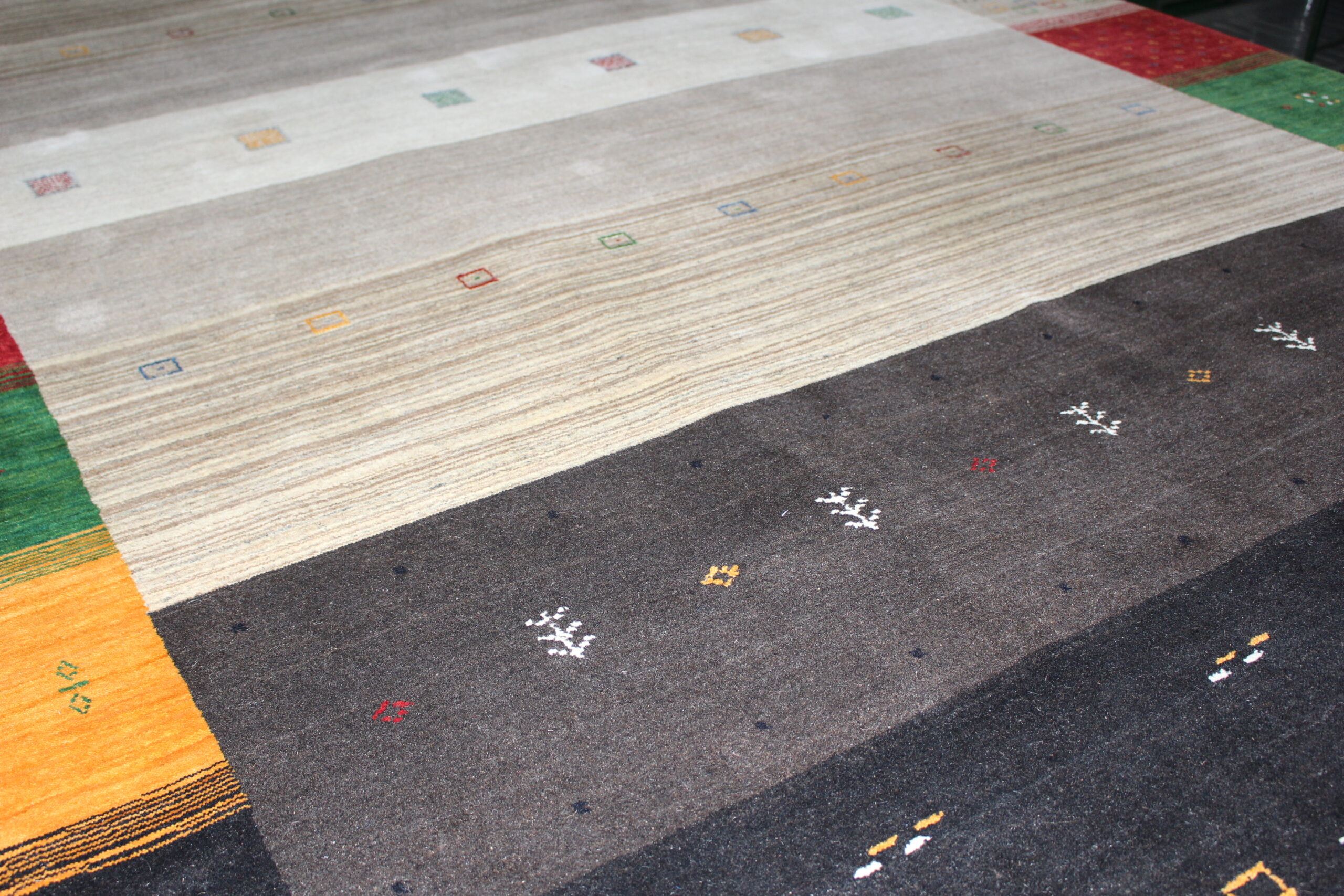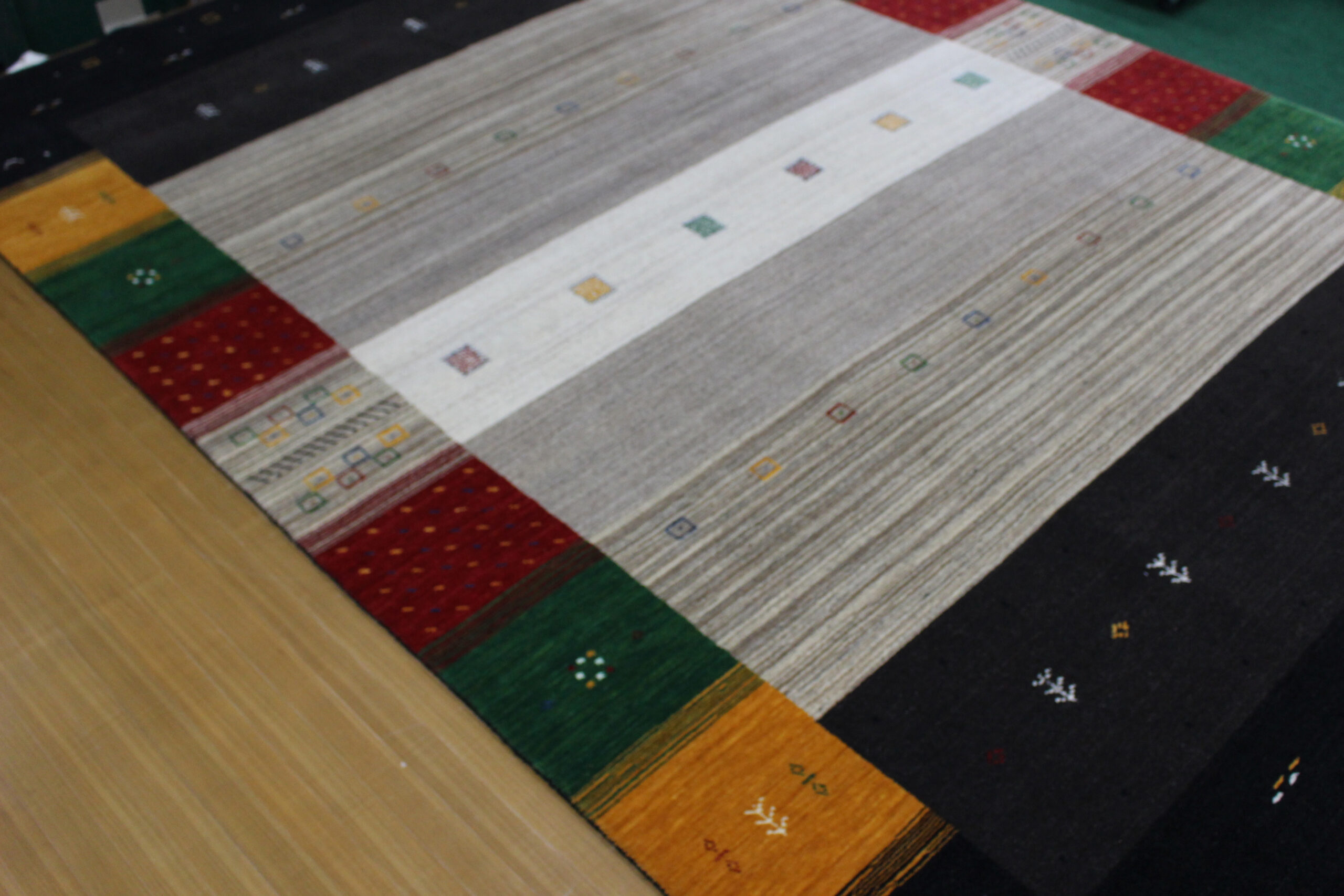 人気のギャッベ柄をハンドルームで仕上げております。