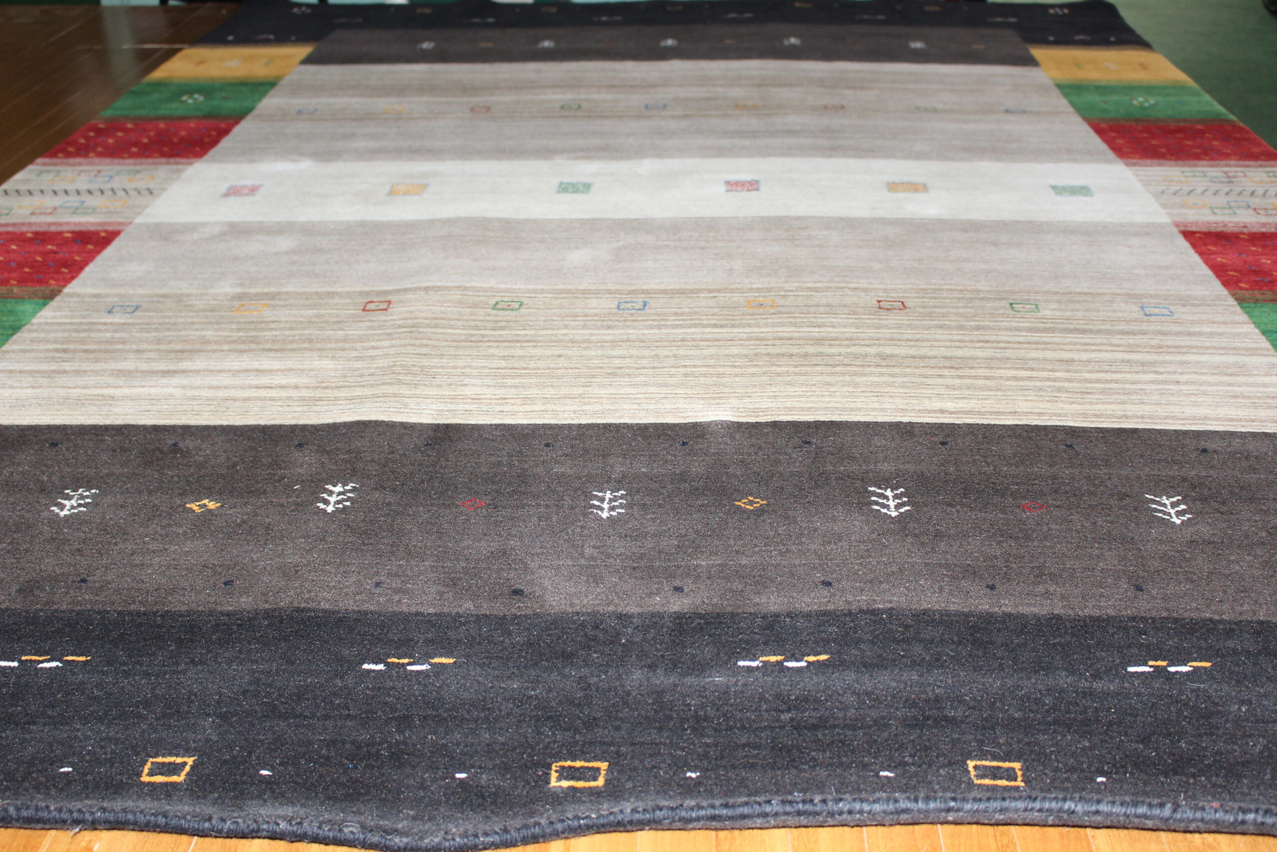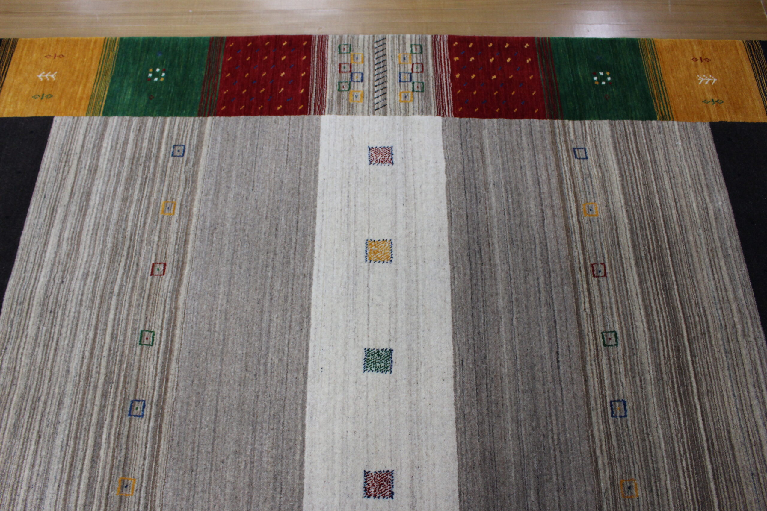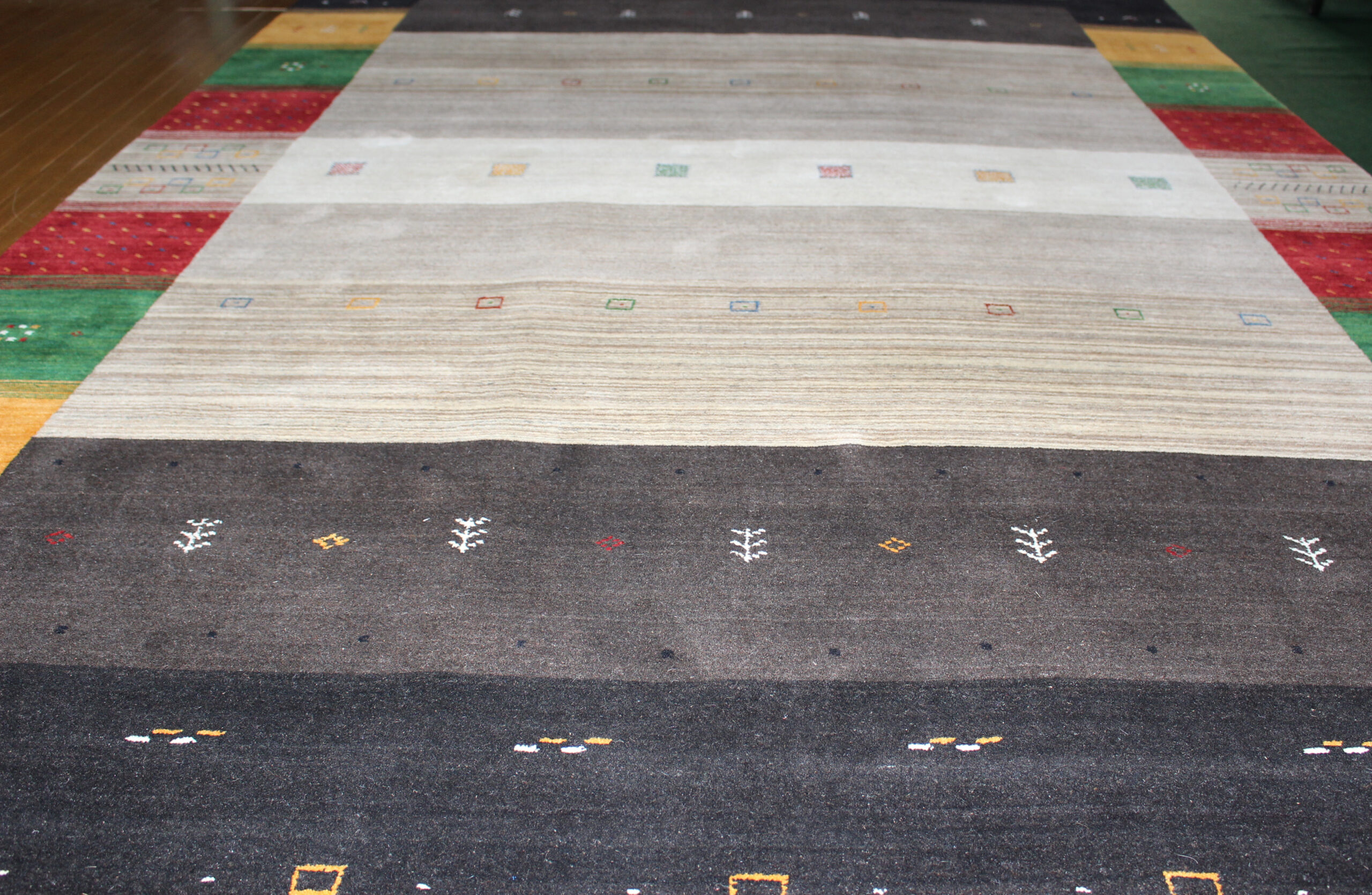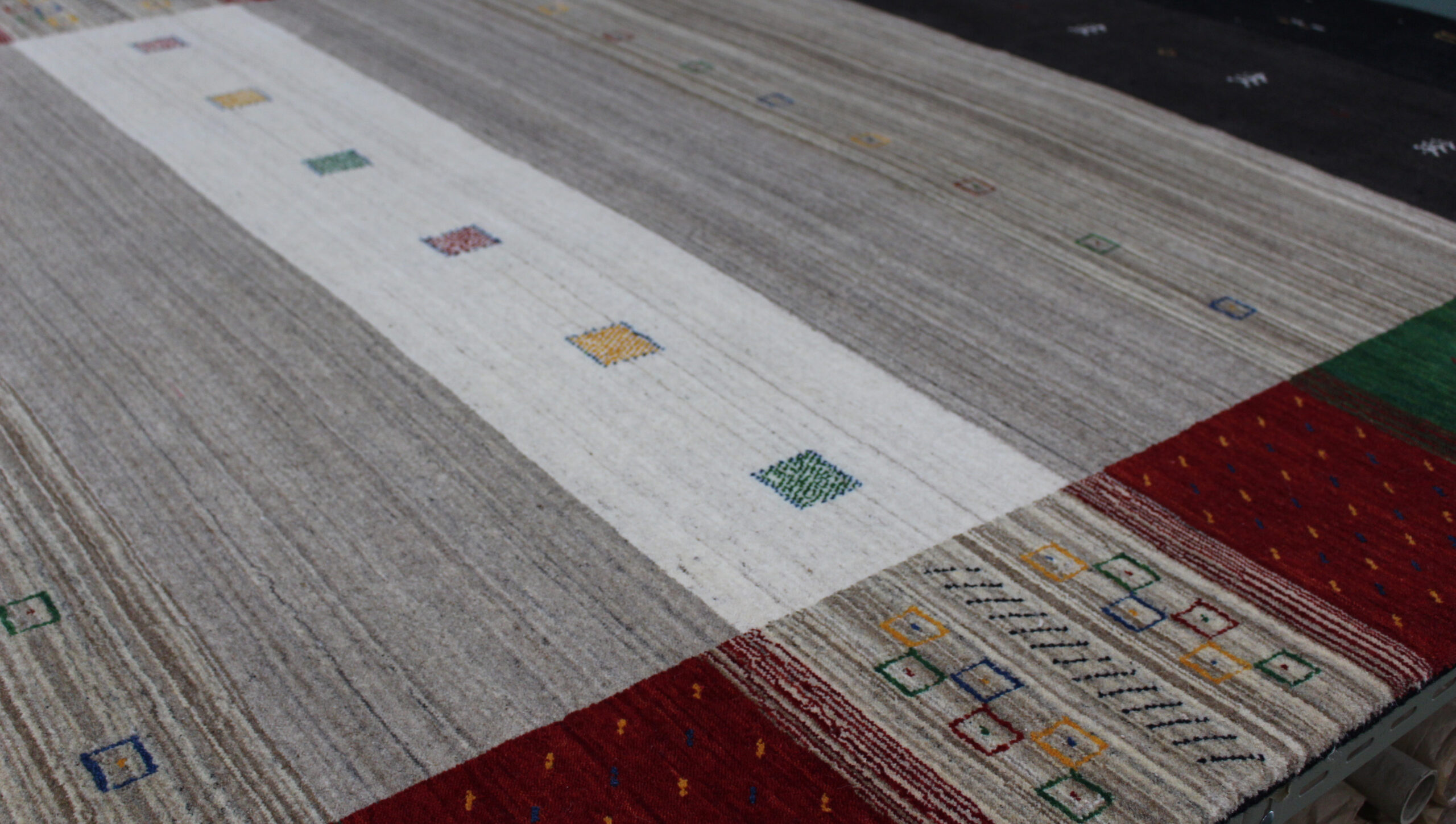 人気のギャッベ柄をハンドルームで仕上げております。