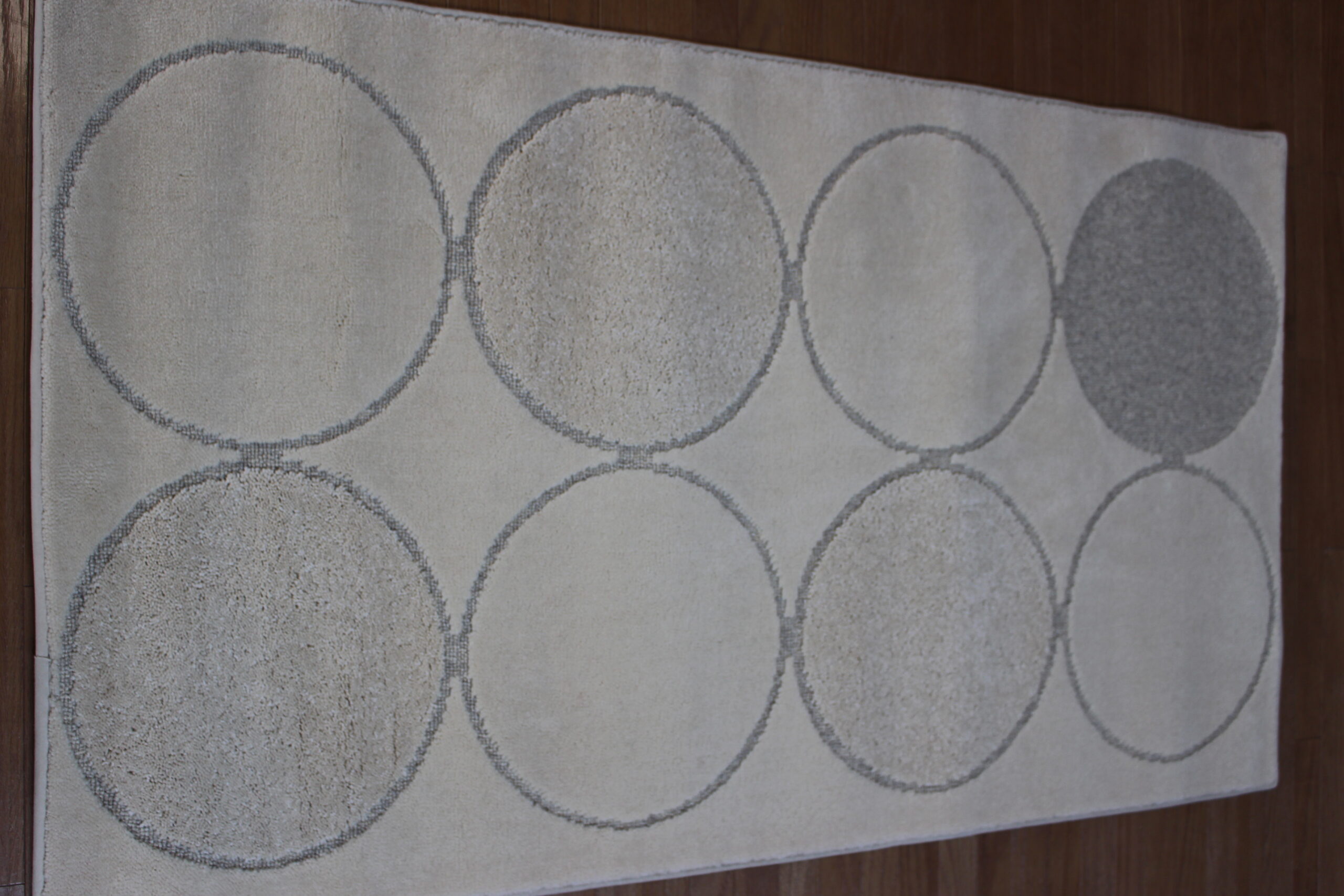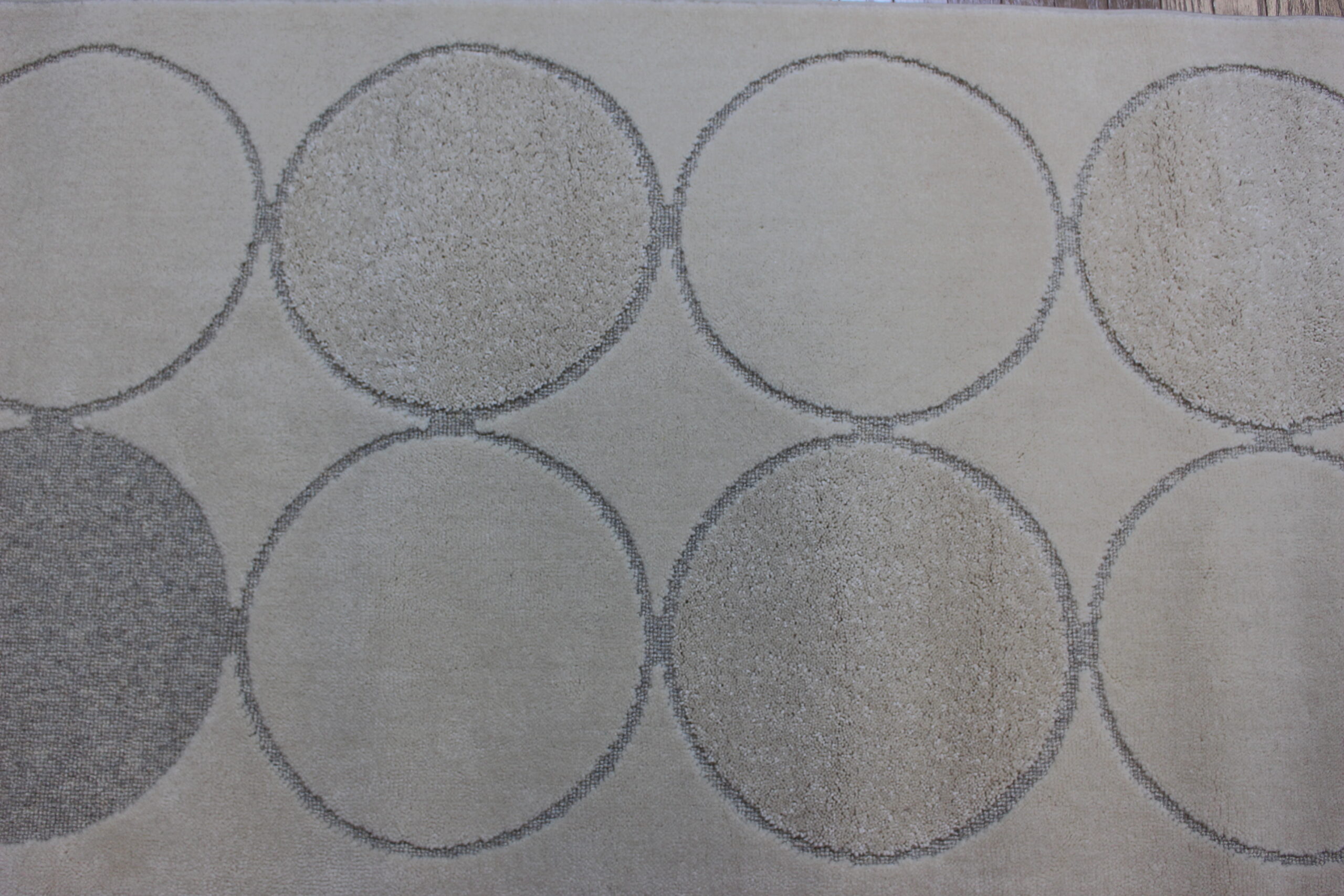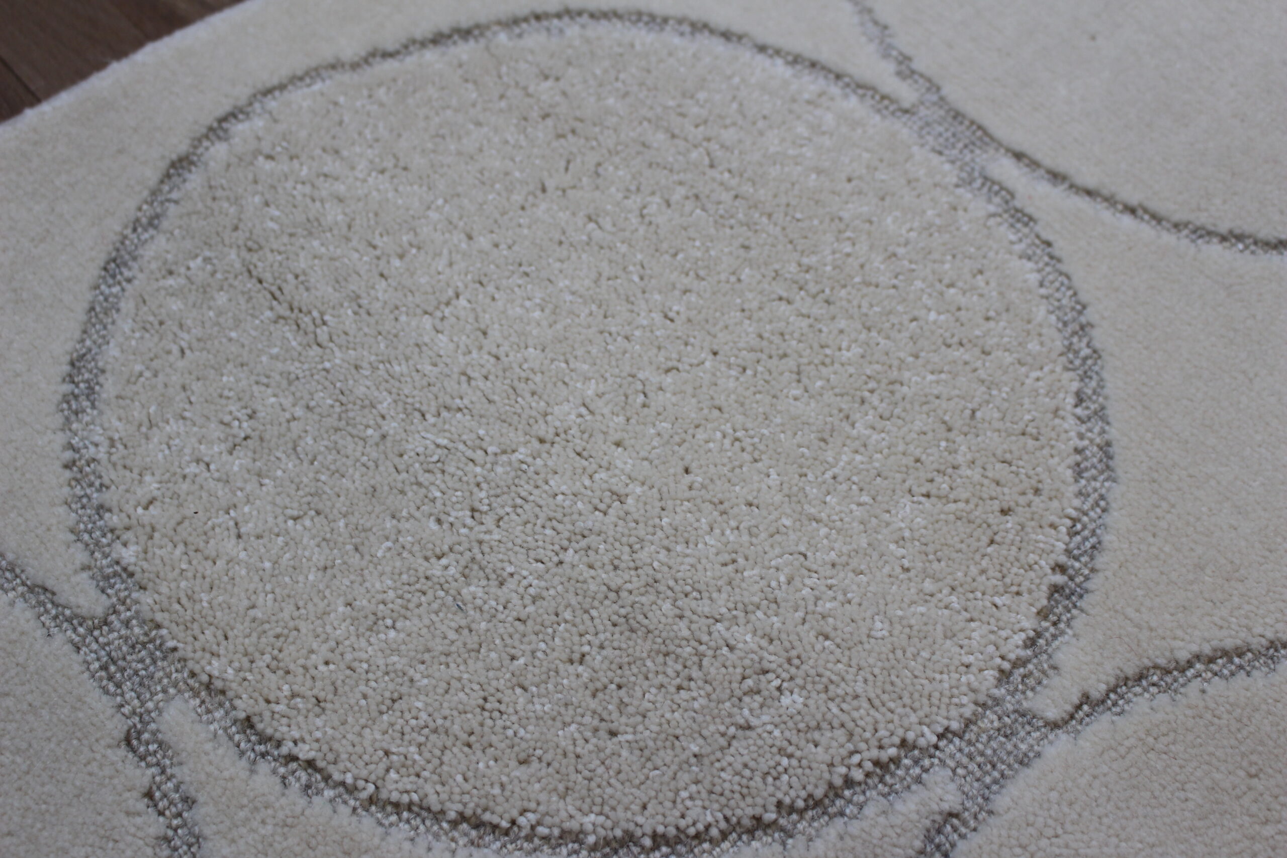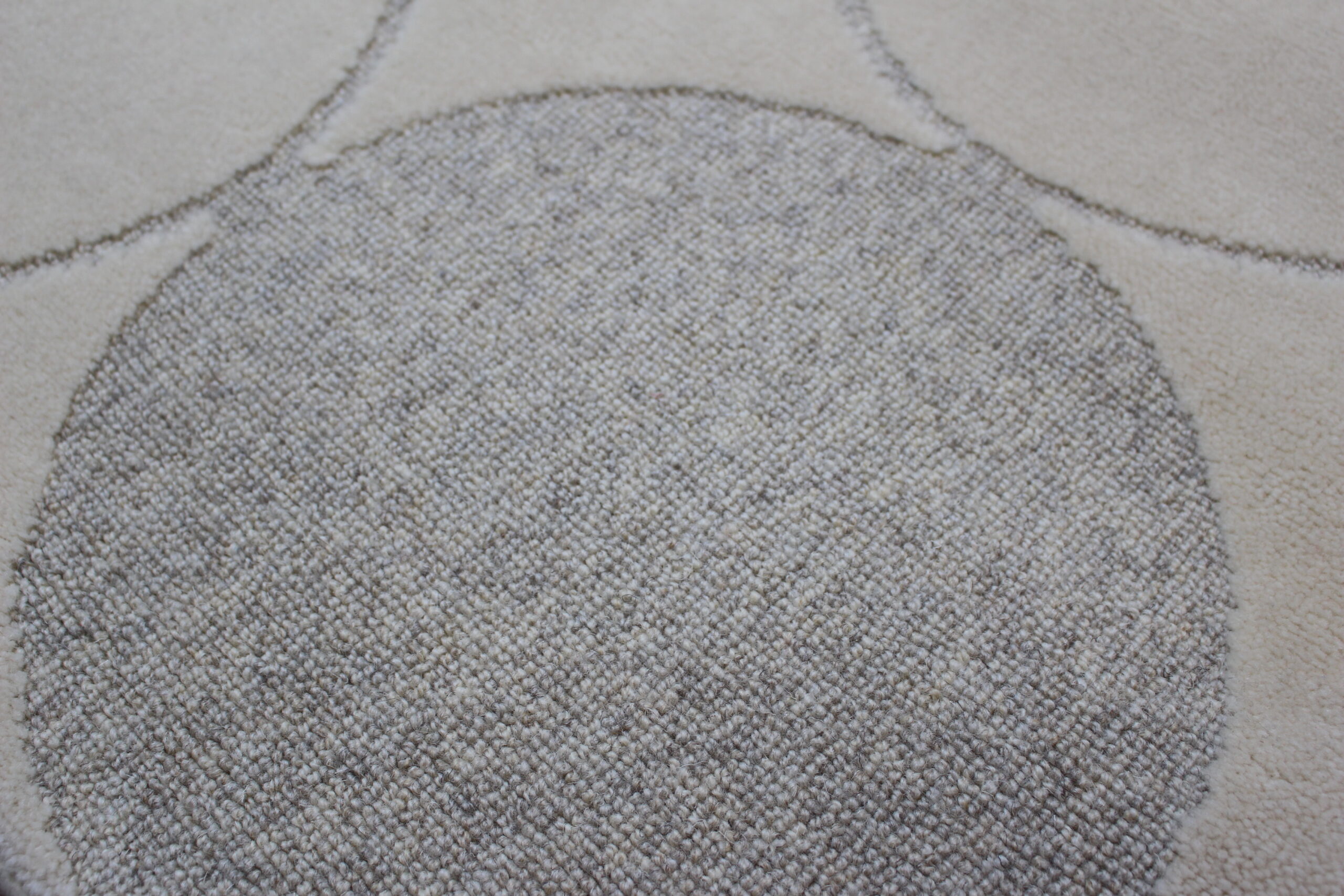 1枚の絨毯の中にハイ&ローカットパイルと、ループパイルの毛並みと3種類のパイルが織り込まれていて、モダンなデザインが人気です。